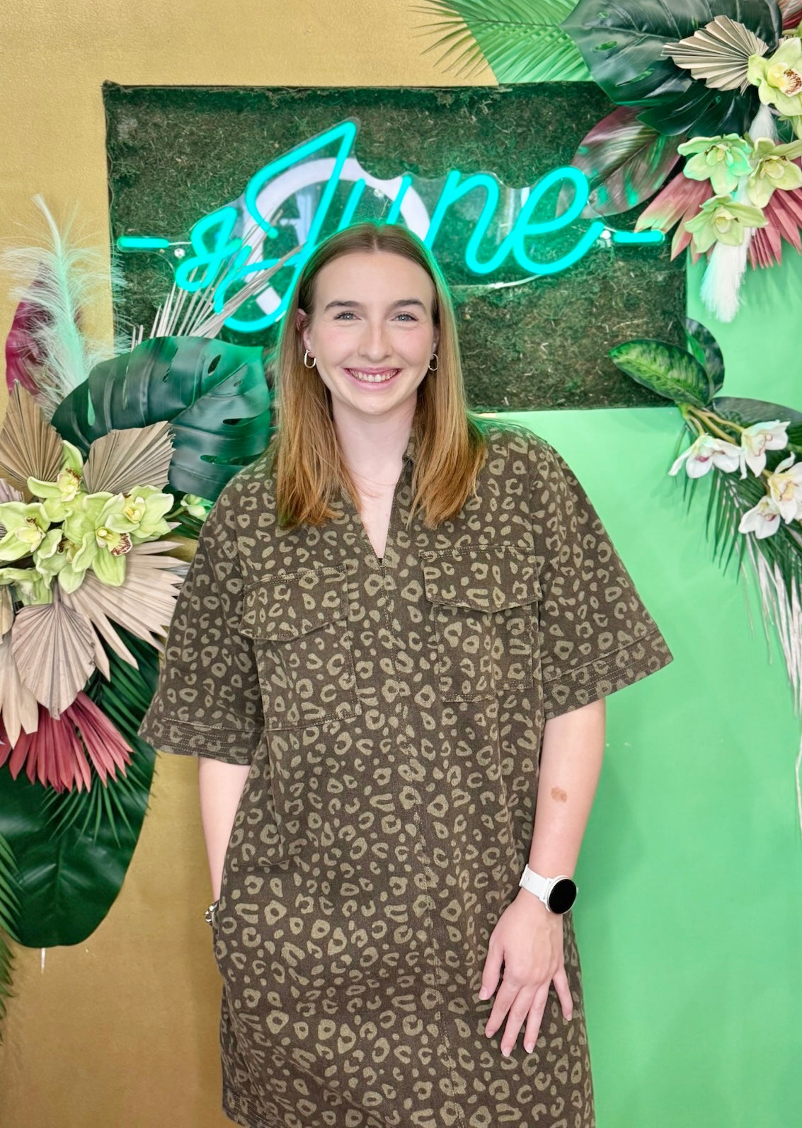 Strut your stuff in this fierce cheetah print denim mini dress! Featuring a bold animal pattern that demands attention, this playful piece combines classic denim durability with a fun, fashion-forward vibe. Two front pockets keep your essentials close while you're out making moves. Perfect for casual outings, weekend adventures, or whenever you want to add a wild touch to your wardrobe. Dress it up with heels or keep it laid-back with sneakers—either way, you'll turn heads.
