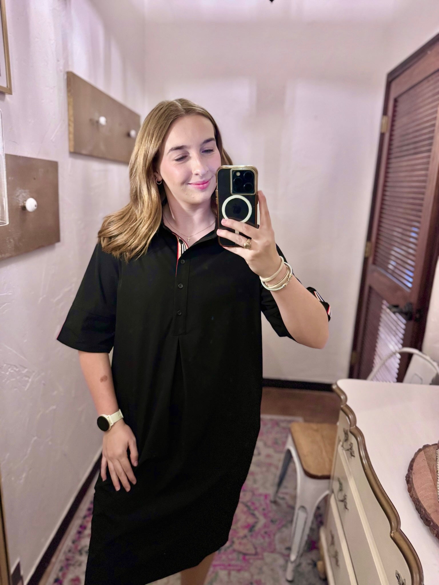 Step into effortless style with The Wendi Dress—a black woven tunic that buttons all the way up for a chic, polished look. Its playful design balances classic simplicity with a touch of fun, making it perfect for everything from brunch dates to evening strolls. Comfortable and easy to wear, this dress is your new go-to for anytime you want to feel smart and stylish in one easy step.