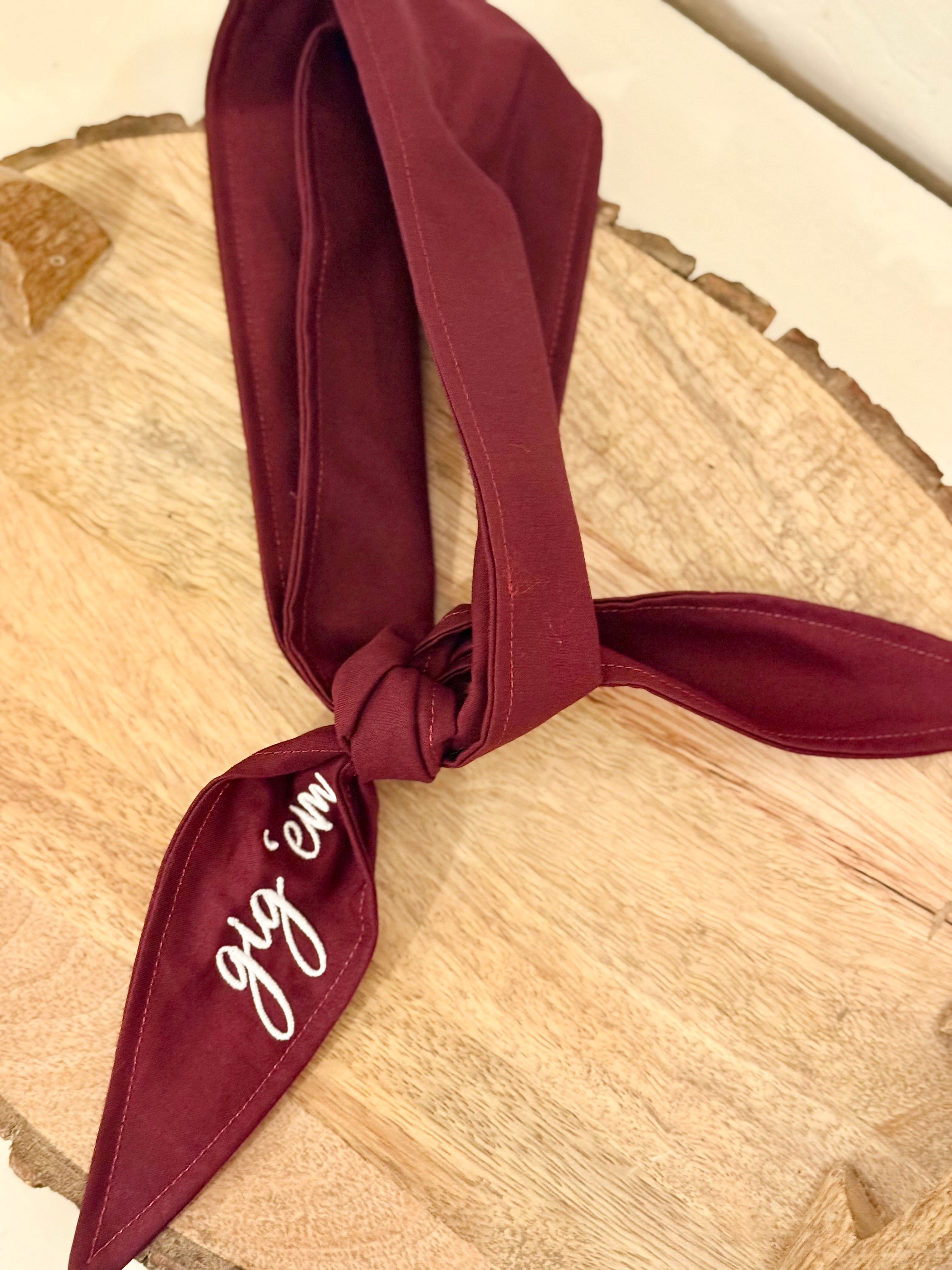 Add a splash of spirited charm with this maroon ascot featuring a crisp white "Gig Em" embroidery. Perfect for showing off your enthusiasm with a playful twist, it’s the ideal accessory to brighten up any outfit and celebrate your team pride in style.