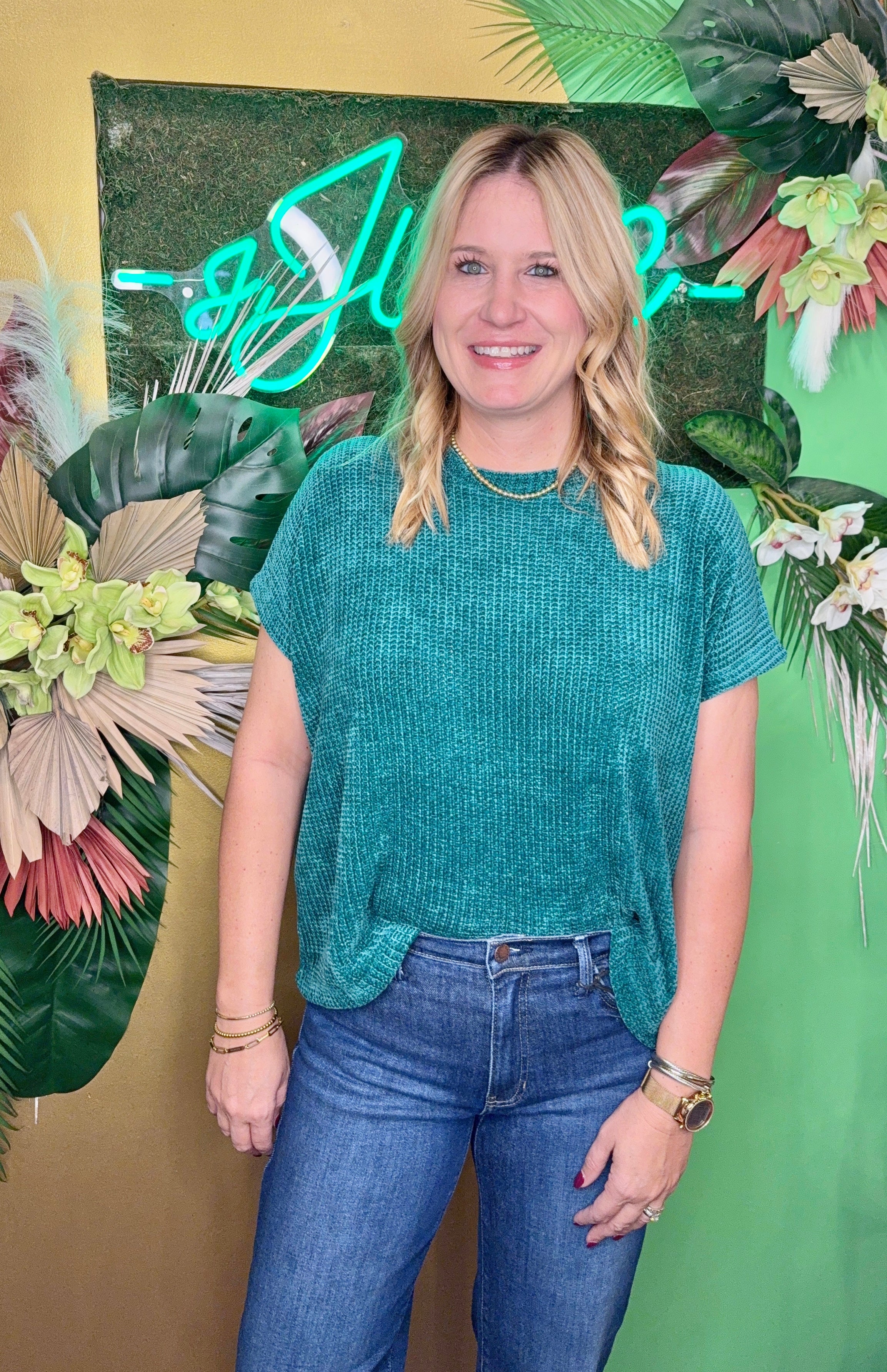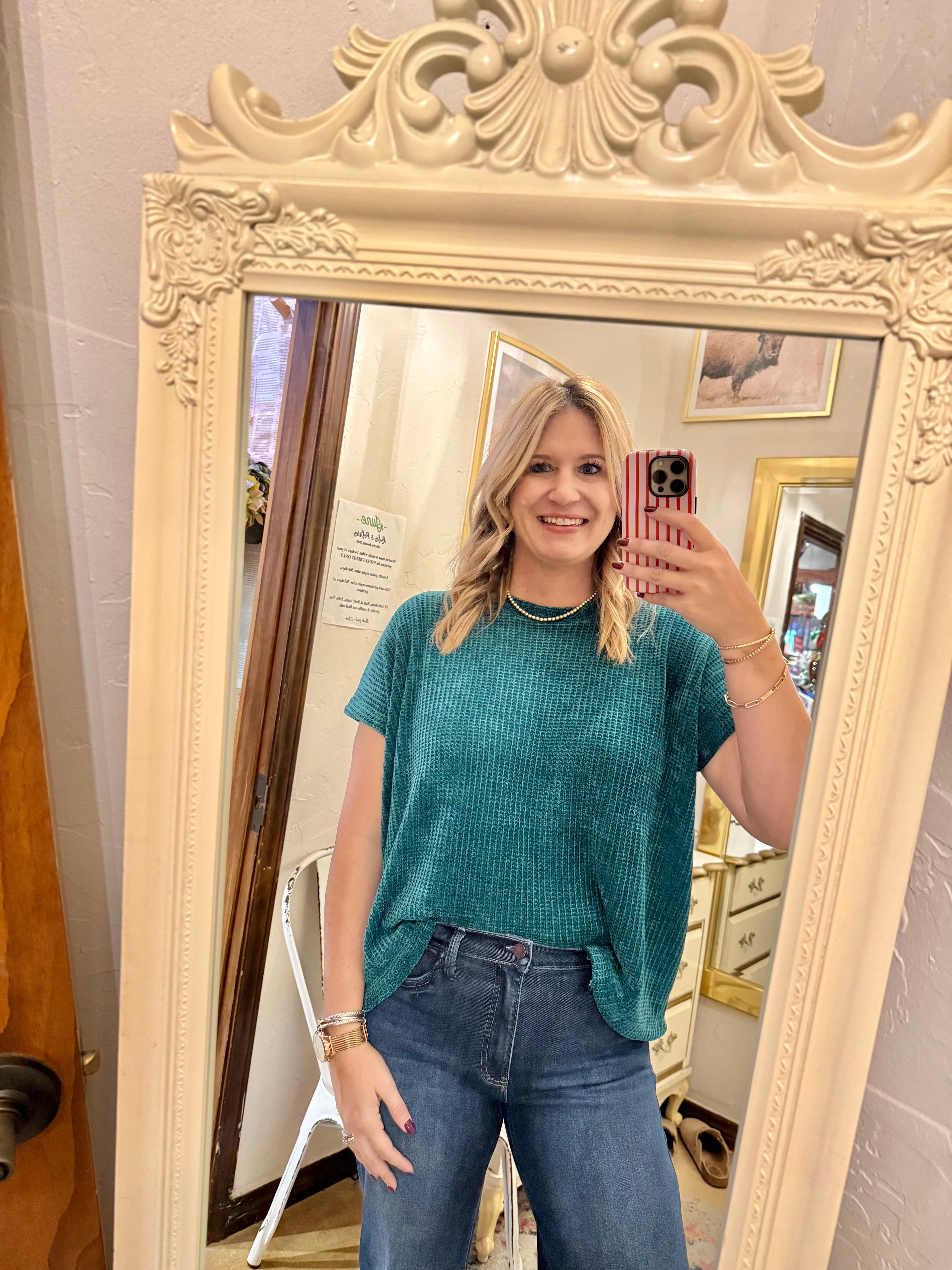 Cozy up in our Hunter Green Waffle Sweater Tee—where comfort meets style. The textured waffle knit adds visual interest and a touch of warmth, while the relaxed fit keeps things effortlessly cool. Perfect for layering or wearing solo, this versatile piece transitions seamlessly from casual coffee runs to weekend hangouts. The rich hunter green shade pairs with everything in your closet, making it a wardrobe essential that works as hard as you do.