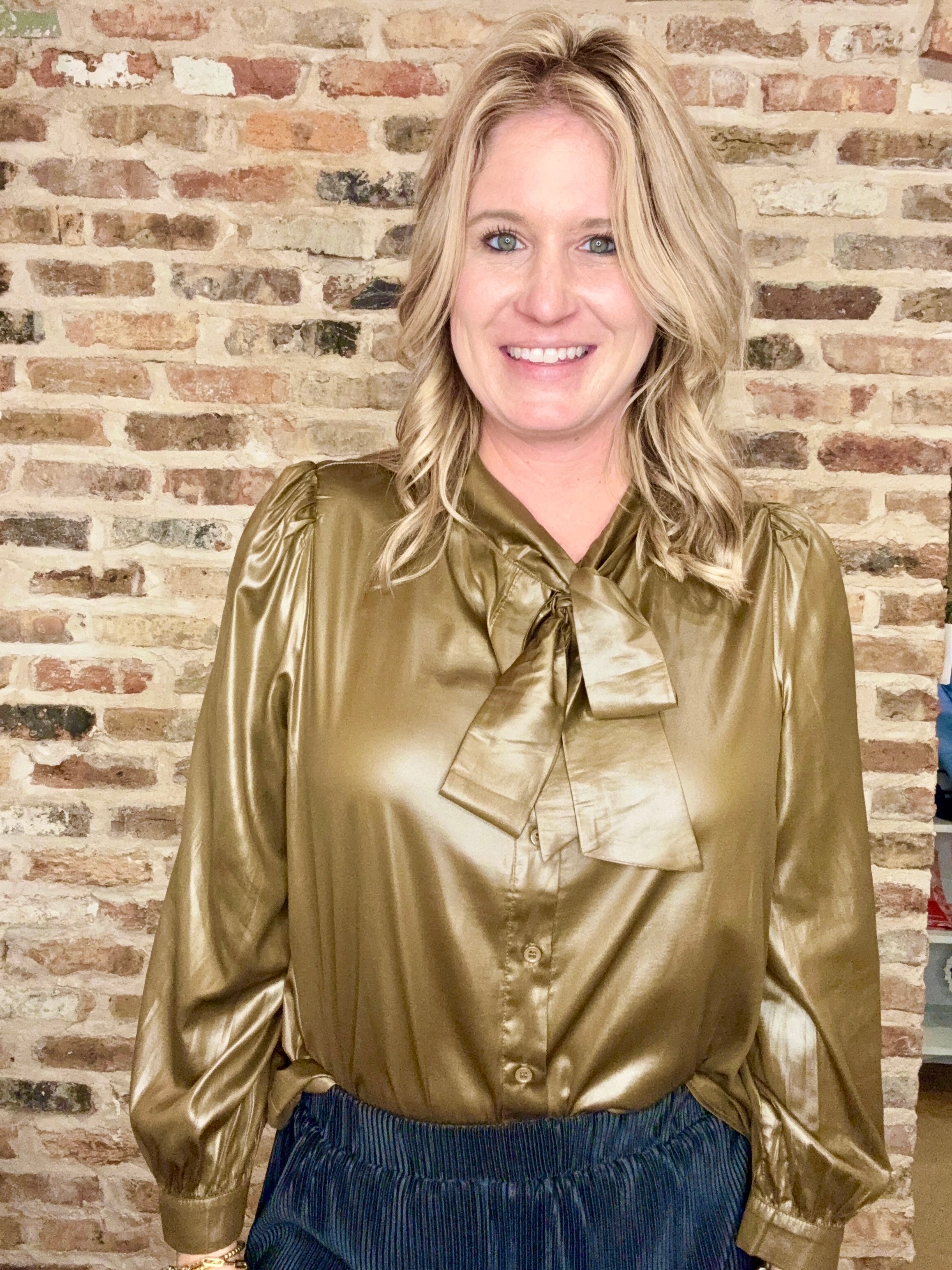 The Joely Blouse adds a playful twist to your wardrobe with its rich mocha color and charming bow tied at the neck. Crafted from textured faux silk, this long-sleeve blouse features buttons running all the way up for a polished yet flirty look. Perfect for dressing up or down, it brings a hint of elegance with a fun, stylish vibe.