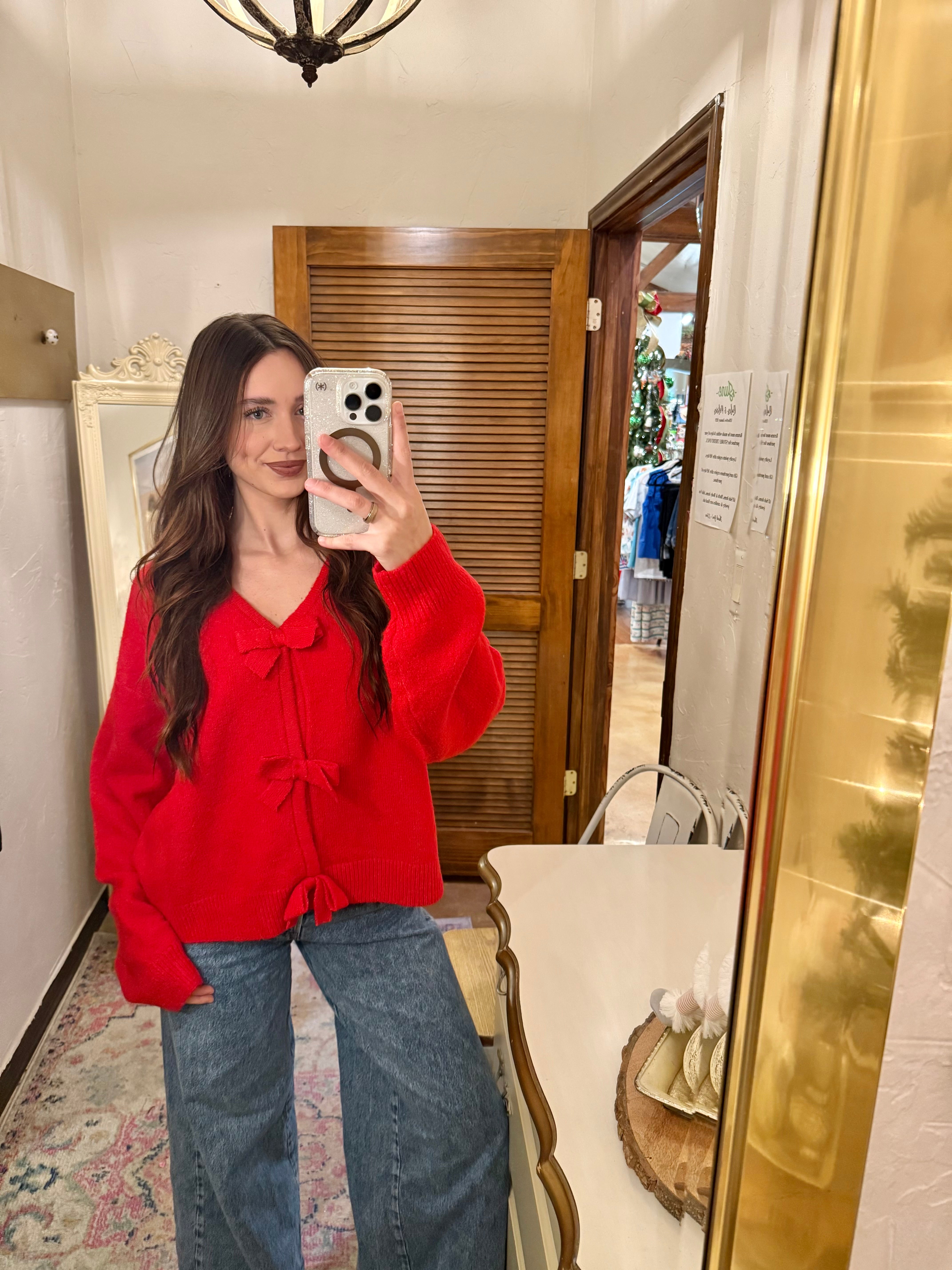 The Colette Bow Sweater is your ticket to turning heads with its vibrant red hue and charming bow-button details. This long sleeve sweater combines cozy comfort with whimsical style, perfect for adding a pop of personality to any outfit. Whether you're dressing up for a special occasion or keeping it casual, those adorable bow accents transform an everyday sweater into something truly special.