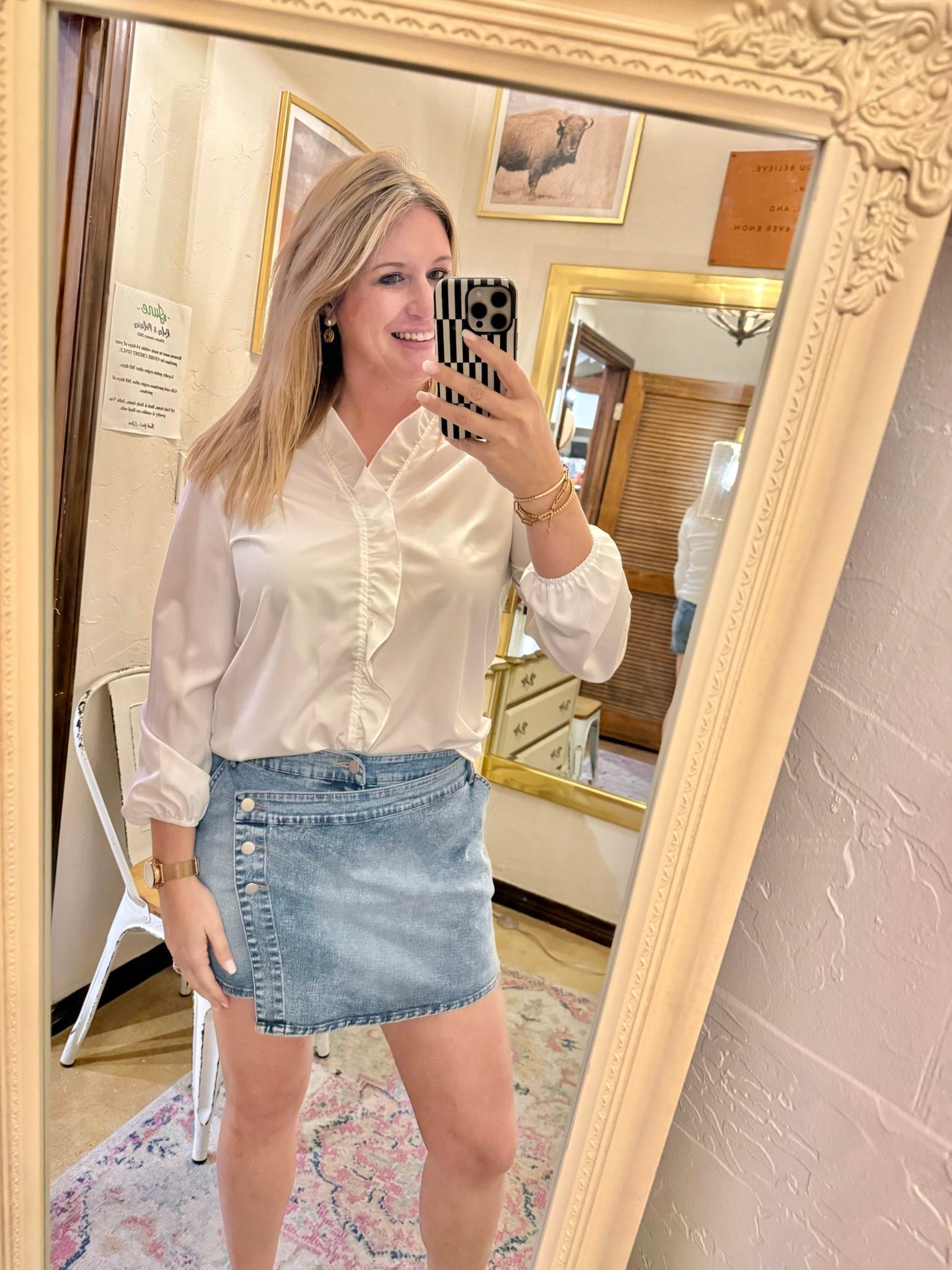 The Piper Mae Skort is your new go-to piece for effortless style. Crafted from stretchy denim, this mini skort moves with you whether you're running errands or hitting the town. The built-in shorts keep you covered and comfy, while the skirt silhouette gives major fun-girl energy. Pair it with sneakers for casual vibes or dress it up with heels—this versatile piece does it all. Perfect for anyone who refuses to choose between a skirt and shorts.