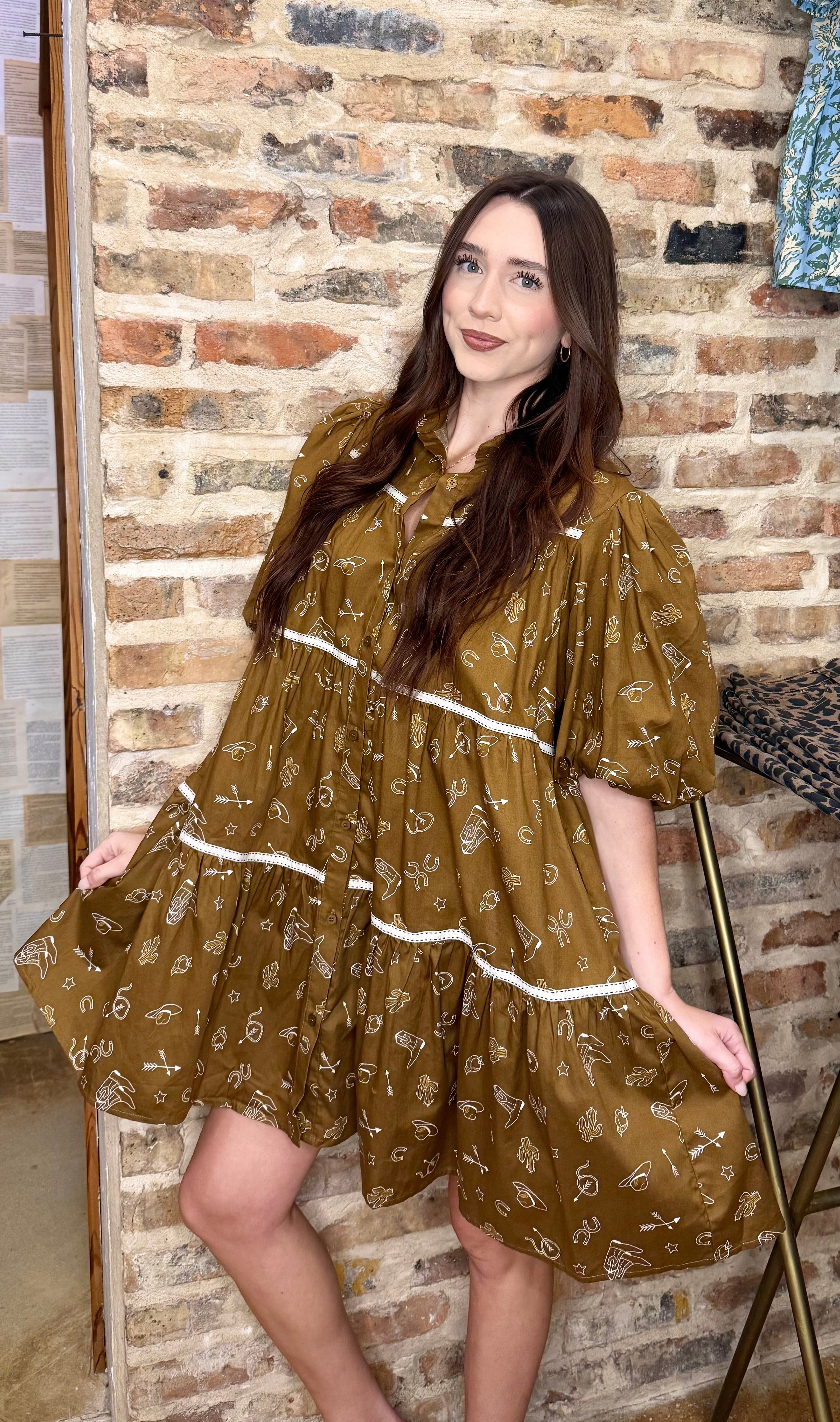 Step into a playful twist on western charm with The Beau Dress. This brown mini dress features lace-trimmed tiers that add flirty layers of detail, while puff sleeves bring a fun, vintage-inspired vibe. Perfect for sunny days or nights out, its breezy silhouette lets you move with ease and confidence. Embrace a look that’s both sweet and spirited with just the right touch of western flair.